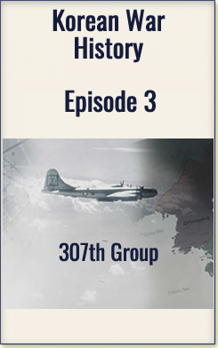 Click any image to open a Korean War History video episode featuring James Blackwell, who shares an ongoing historical perspective of the Korean War through the experiences of the 307th Bomber Group.